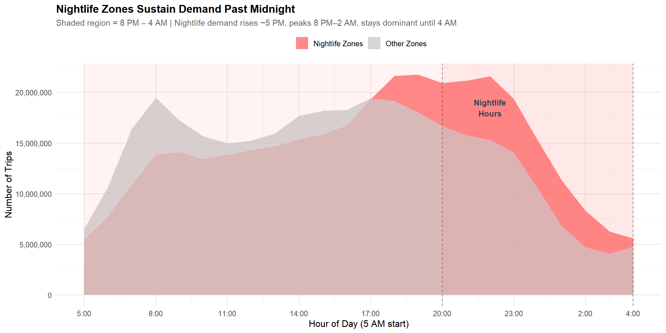 - TLC Rideshare Trip Records: Trip records comparing late-night demand across nightlife and non-nightlife zones.